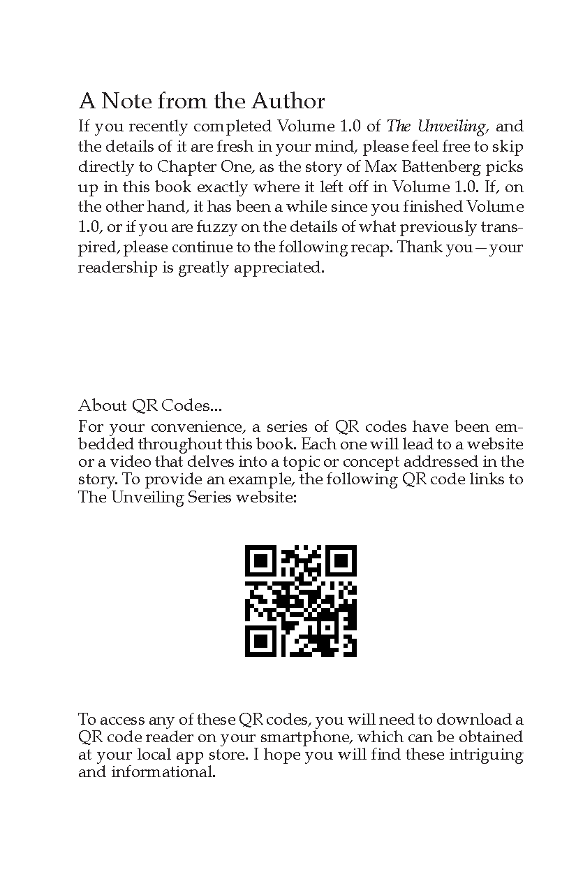 Based on Sumerian mythology, The Unveiling 1.0 is a clever blend of fact and fiction that many have compared to the oeuvres of Dan Brown. When the story opens, billionaire heir, Max Battenberg, is blessed with a carefree and idyllic life. Everything is turned upside down, however, just months shy of his 25th birthday in the family's traditional rite of passage, the mysterious Battenberg initiation. During the bizarre ceremony, his family's darkest secret is revealed. The Battenbergs are descended from an ancient bloodline spoken of in one of the world's oldest mythologies. Since the dawn of civilization, his family, and others like them, have remained hidden in the world's ruling classes from the Pharaohs of Egypt to the royals of Europe. In modern times, the clan of blue bloods, an estimated one percent of the population, continues its tyrannical reign, hidden behind the veils of politics, law and banking. As their newest initiate, however, Max must soon decide. Will he carry on his legacy's treacherous agenda of world domination? Or might he embrace the prophecy of a peculiar psychic to become one of the greatest liberators of all time?